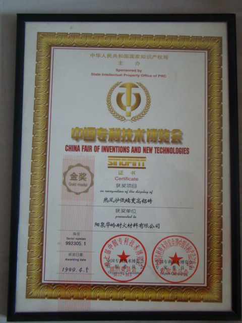 熱風(fēng)爐用低蠕變高鋁磚、高荷軟高鋁磚獲省科技進(jìn)步二等獎(jiǎng),微膨脹高鋁磚列入火炬計(jì)劃項(xiàng)目,炭素焙燒爐用特種高鋁磚已批準(zhǔn)國家專利